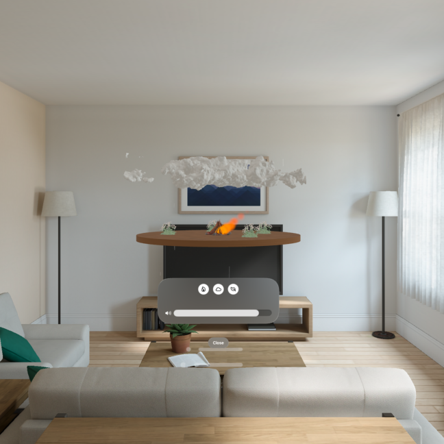 焚き火、雨、虫の声のオンオフができる機能を作成しました。